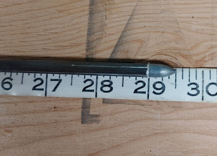 The measurement ends at the end of the shaft not the point. In the picture it is exactly 29"